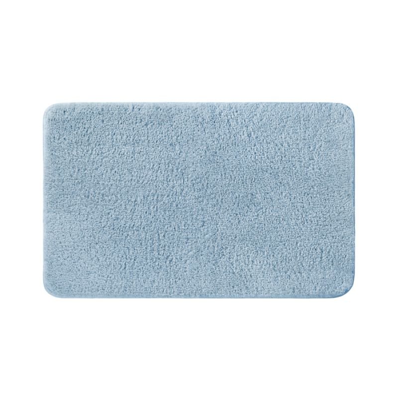 Мягкий коврик для ванной светло-синего цвета с плотным высоким ворсом (2 см), очень приятный на ощупь. Стриженый ворс из микрофибры отлично держит форму, легко чистится и быстро сохнет. Коврик подойдет для ванной и туалета.