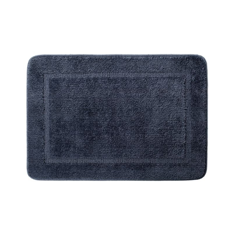 Мягкий коврик для ванной глубокого синего цвета с плотным невысоким ворсом (1 см), очень приятный на ощупь. Ворс из микрофибры отлично держит форму, легко чистится и быстро сохнет. Коврик подойдет для ванной и туалета.