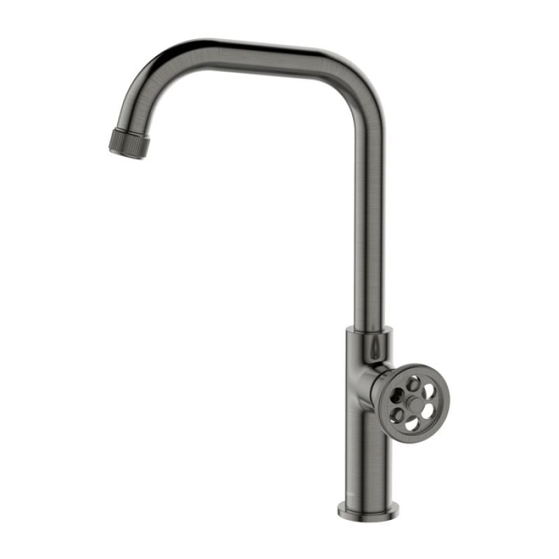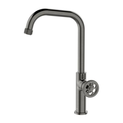 Однозахватный смеситель для кухни Grange в стильном оттенке графит имеет запоминающийся дизайн и яркие, неординарные детали. Круглая дизайнерская ручка красиво, оригинально выглядит и удобно поворачивается даже мыльной рукой. Такой смеситель прекрасно дополнит интерьер в трендовом стиле лофт и может быть установлен как на мойку, так и на столешн...