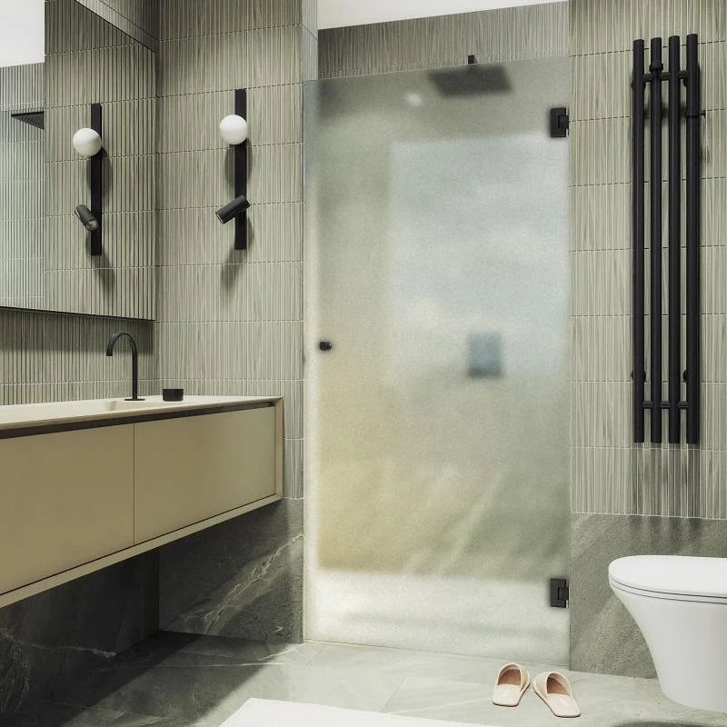 Стеклянная душевая дверь на петлях является стильным и функциональным элементом для ванной комнаты. Она обеспечивает мягкое и плавное открывание, что повышает комфорт использования. Изготовленная из прочного закаленного стекла дверь устойчива к царапинам и влаге, что гарантирует ее долговечность.