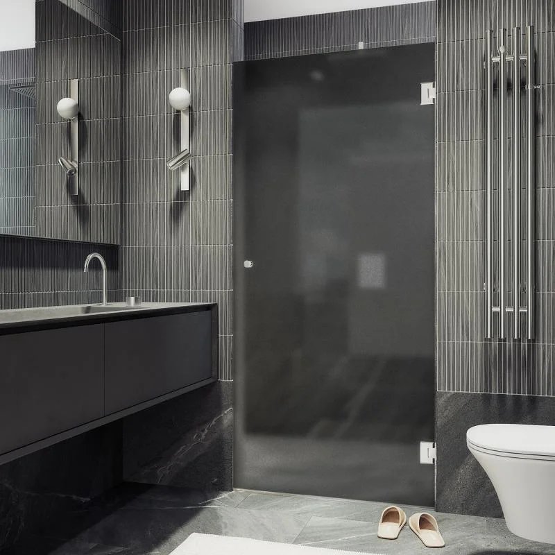 Стеклянная душевая дверь на петлях является стильным и функциональным элементом для ванной комнаты. Она обеспечивает мягкое и плавное открывание, что повышает комфорт использования. Изготовленная из прочного закаленного стекла дверь устойчива к царапинам и влаге, что гарантирует ее долговечность.