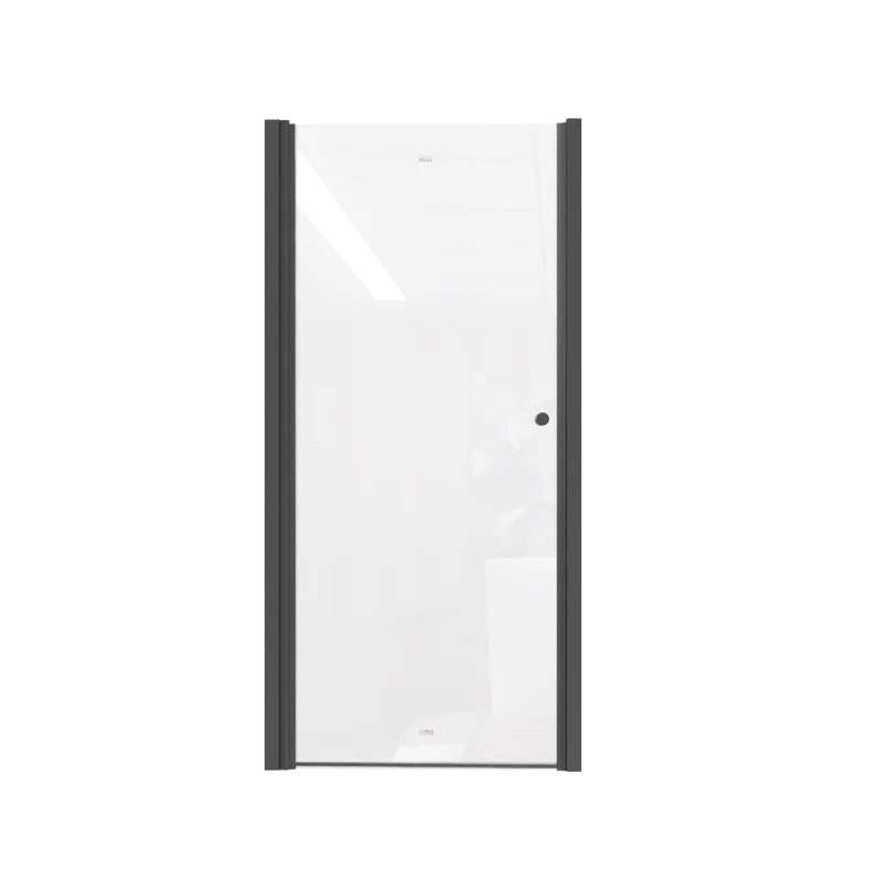Распашная дверь образует вход комфортной ширины. Модель из прозрачного закаленного стекла (5 мм). Полотно устойчиво к случайным ударам. В случае битья, стекло рассыпается на множество мелких частей с тупыми гранями.