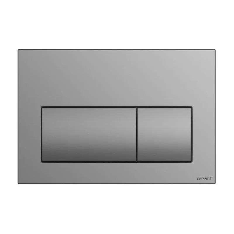 Кнопка изготовлена из пластика с матовым хромированным покрытием для двухуровневого механизма смыва