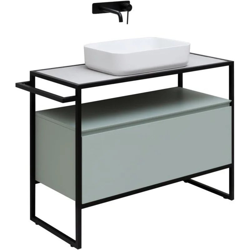 Стильные каркасы тумб и пеналов выполнены из металла, имеют брашированную поверхность с нанесением цвета путем анодирования.