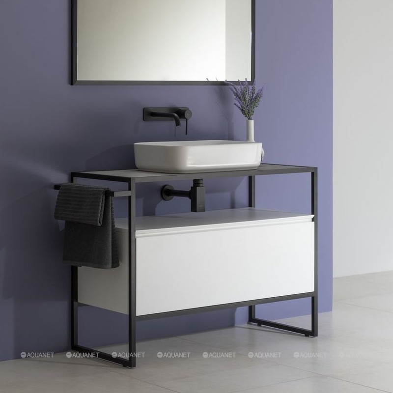 Стильные каркасы тумб и пеналов выполнены из металла, имеют брашированную поверхность с нанесением цвета путем анодирования.