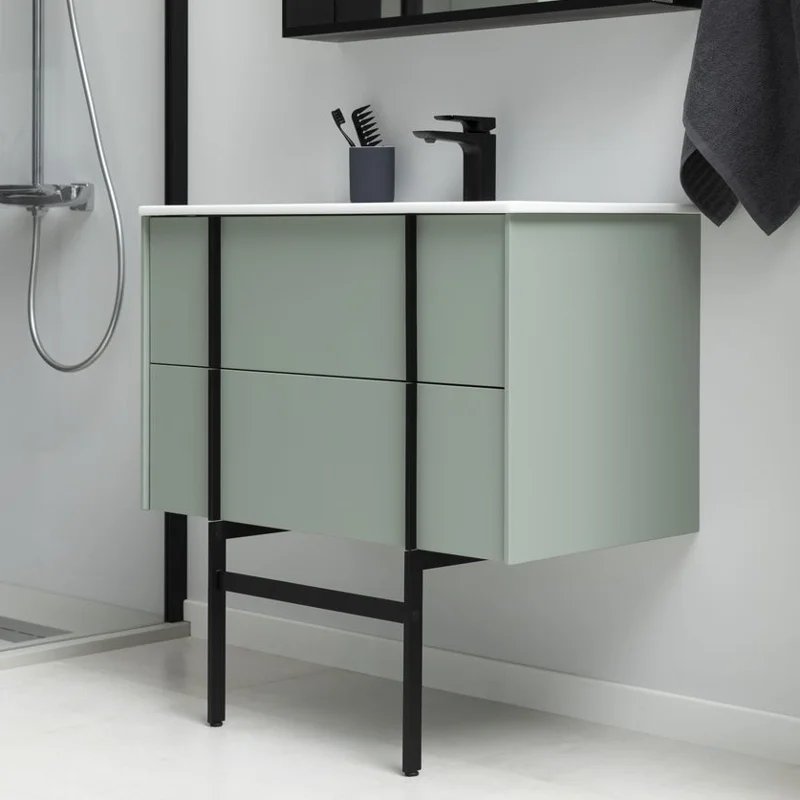 Тумбы оснащены специальной пластиковой рамой, которая надежно защищает вырез под сифон, служит органайзером и позволяет закрепить дополнительный набор контейнеров для хранения.