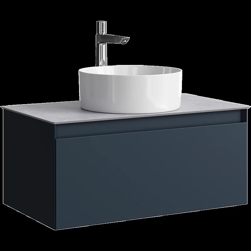 Подвесная тумба с накладным умывальником Aqwella Geometria 81см, с одним ящиком, цвет серый, со столешницей серый камень