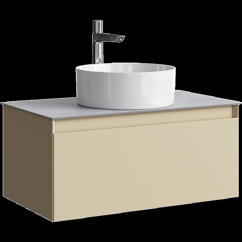 Подвесная тумба с накладным умывальником Aqwella Geometria 81см, с одним ящиком, цвет морская дюна, со столешницей серый камень