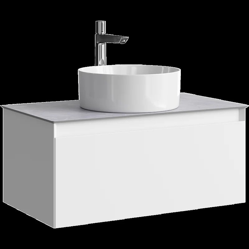 Подвесная тумба с накладным умывальником Aqwella Geometria 81см, с одним ящиком, цвет белый, со столешницей серый камень