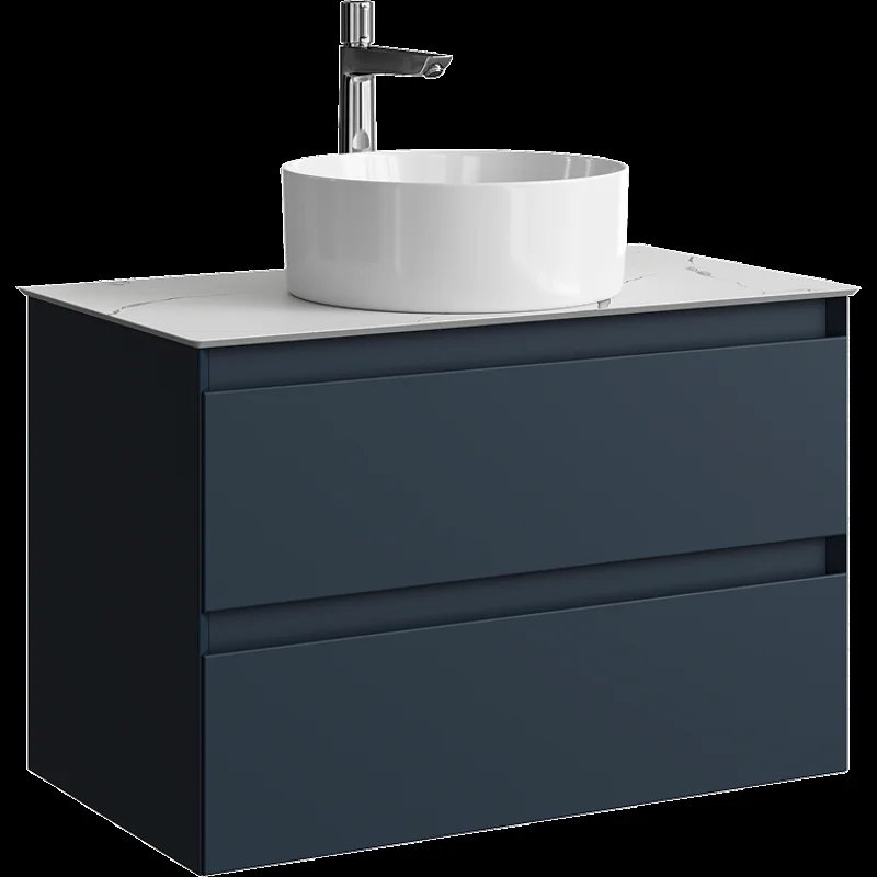Подвесная тумба с накладным умывальником Aqwella Geometria 81см, с двумя ящиками, цвет серый, со столешницей мрамор белый
