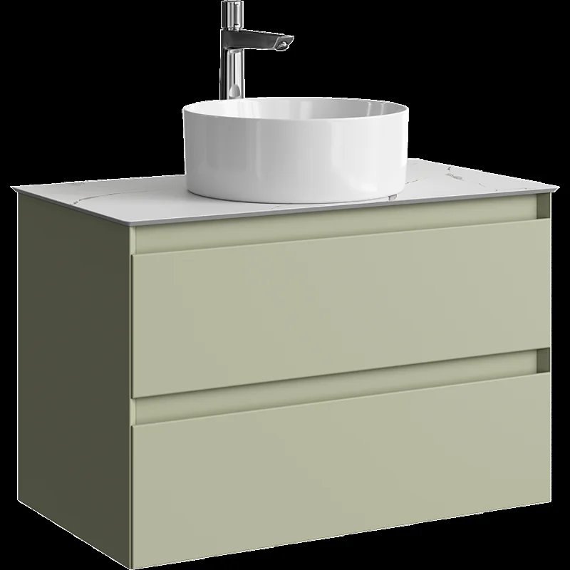 Подвесная тумба с накладным умывальником Aqwella Geometria 81см, с двумя ящиками, цвет зеленый шалфей, со столешницей мрамор белый