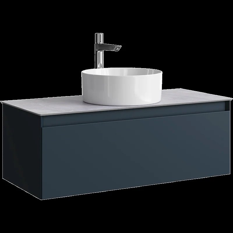 Подвесная тумба с накладным умывальником Aqwella Geometria 100см, с одним ящиком, цвет серый, со столешницей серый камень