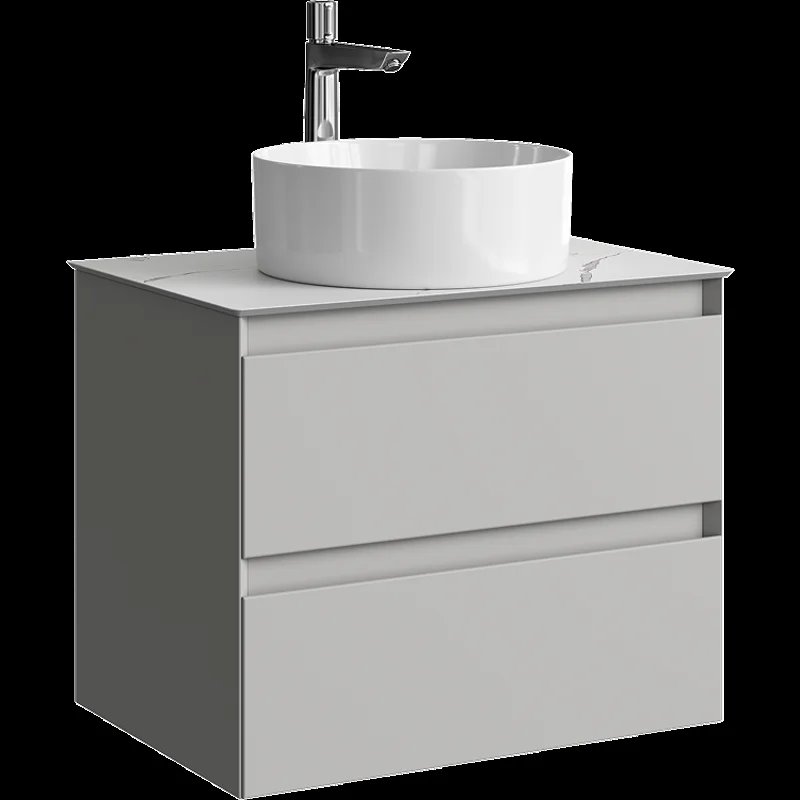 Подвесная тумба с накладным умывальником Aqwella Geometria 65см, с двумя ящиками, цвет серый туман, со столешницей мрамор белый