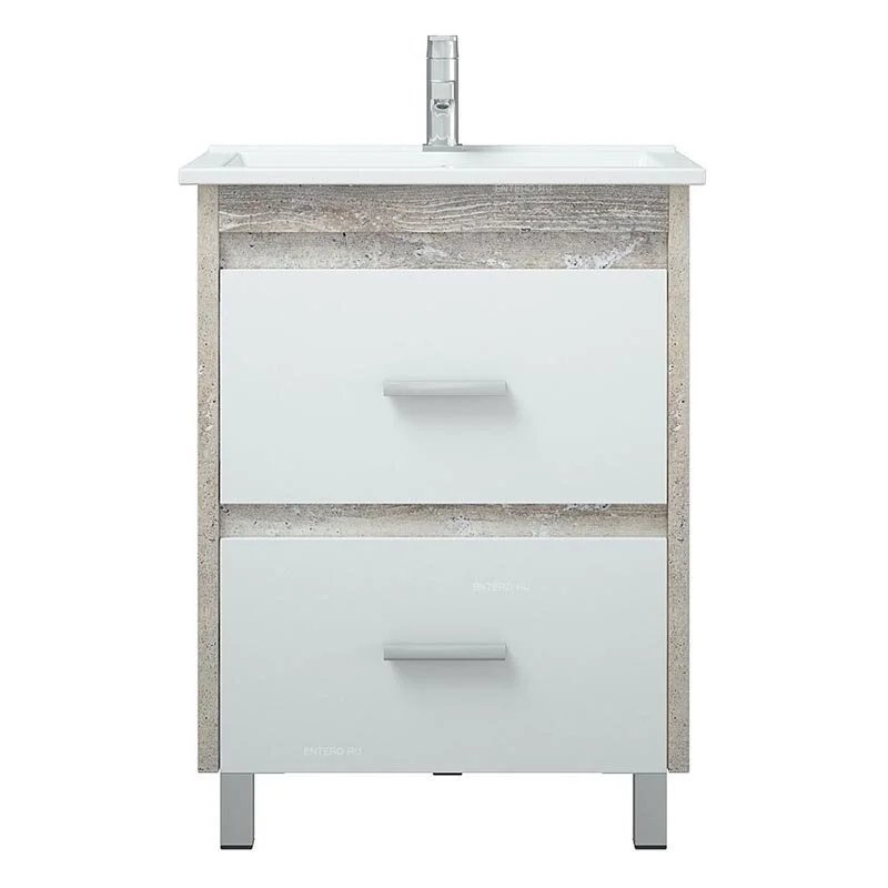У тумбы 2 выдвижных ящика. Высота ящиков 170 мм, верхний ящик разделен пополам. Тумба стоит на 4 металлических опорах. Боковины выполнены из ЛДСП 26 мм толщиной.