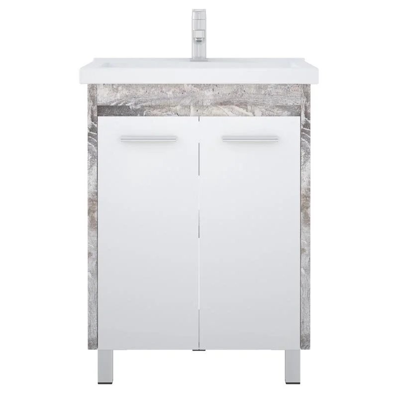 У тумбы 2 распашные двери, позади полки. 4 металлические опоры. Боковины выполнены из ЛДСП 26 мм толщиной.