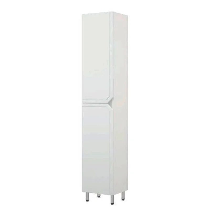 У шкафа-пенала «Сириус» 2 распашные дверки, позади дверок – полки. Фасады без ручек – вместо них эргономичная форма сбоку для удобства открывания. Фасад выполнен из влагостойкой плиты МДФ. В комплект входят хромированные опоры.