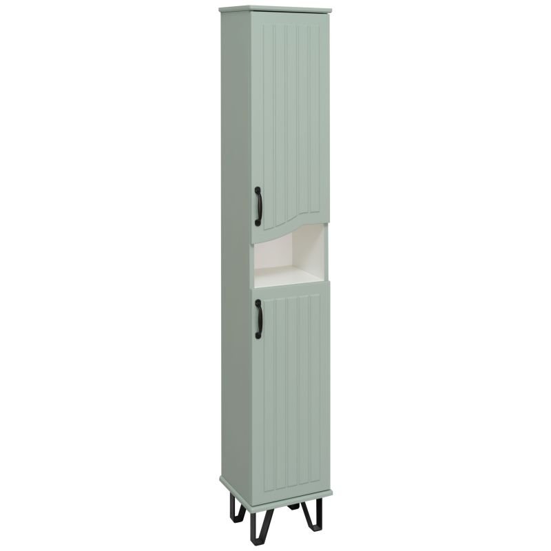 Шкаф-колонна напольный с двумя распашными дверками и открытой нишей посередине. В верхнем и нижнем отделениях по одной встроенной полке. Петли со встроенным доводчиком, ножки черные пластиковые -4шт, ручки черные -2шт. Корпус и фасады покрыты пленкой в цвете мята, что в сочетании с черной фурнитурой делают мебель стильной и оригинальной. Выпус...
