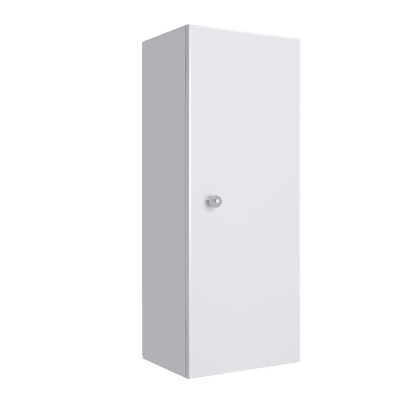 Шкаф навесной с одной распашной дверкой, за которой - две встроенные полки. Петли со встроенным доводчиком, ручка - 1шт, навесы 2шт. Универсальный.