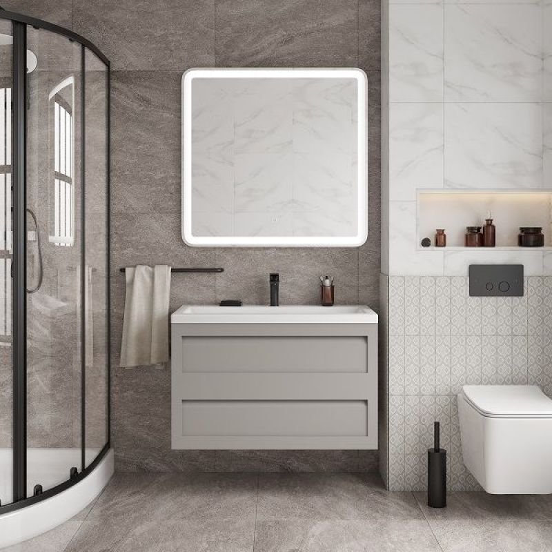 Тумба под раковину Art&Max Platino 90 см подвесная, светло-серый матовый, AM-Platino-900-2C-SO-GCM