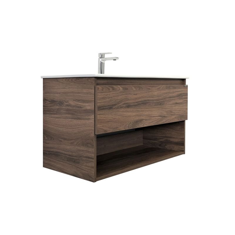 Тумба с раковиной Comforty "Бордо-90" 00-00006671 дуб темно-коричневый с раковиной "Quadro 90"