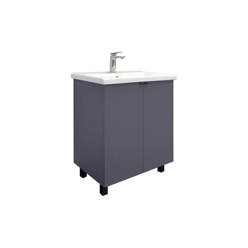 Напольная Тумба с раковиной с двумя распашными створками декорированными вертикальной фрезеровкой. Створки ос...