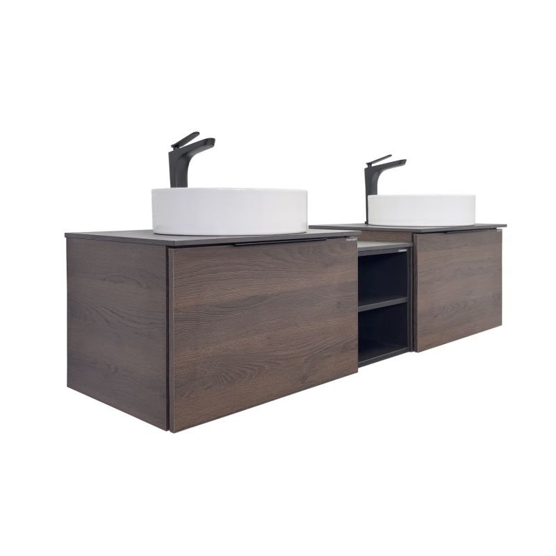 Тумба с раковиной Comforty Портленд-150 00-00013687 дуб шоколадно-коричневый со столешницей под мрамор Калакатта Блэк c раковинами Comforty 9110