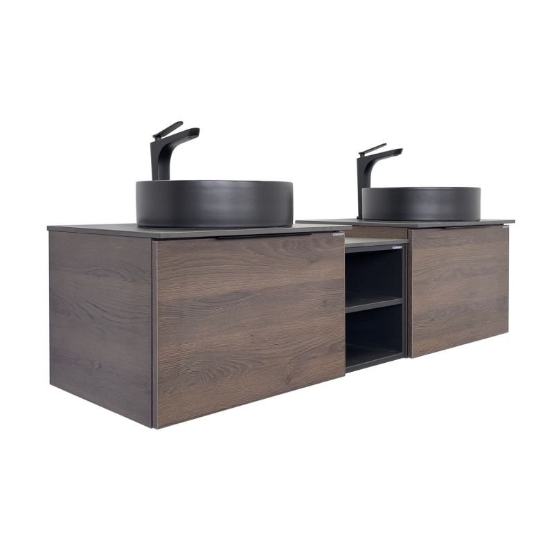 Тумба с раковиной Comforty Портленд-150 00-00013790 дуб шоколадно-коричневый со столешницей Калакатта Блэк c раковинами Comforty 9110MB