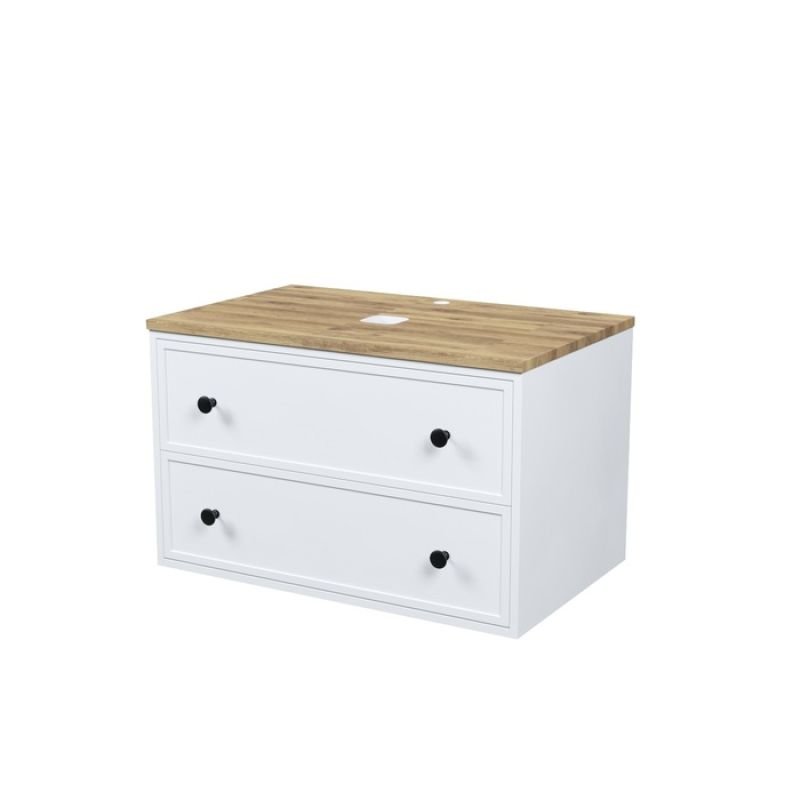 Вместительная подвесная тумба Torr классического молочно-белого цвета со столешницей из клееного натурального дуба. Сочетает в себе узнаваемый стиль и практичность популярного скандинавского дизайна. Ее четкие формы, теплый цвет дерева, фасады с декоративной филенкой, круглые ручки смотрятся гармонично и впишутся в любой современный интерьер. По...