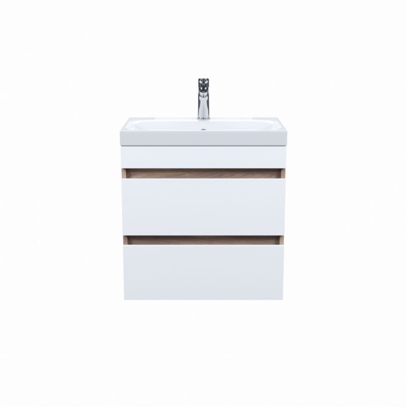 Тумба с умывальником подвесная с ящиками, 60 см, белая/под дерево, Zodiac, IDDIS, ZOD6AB0i95K