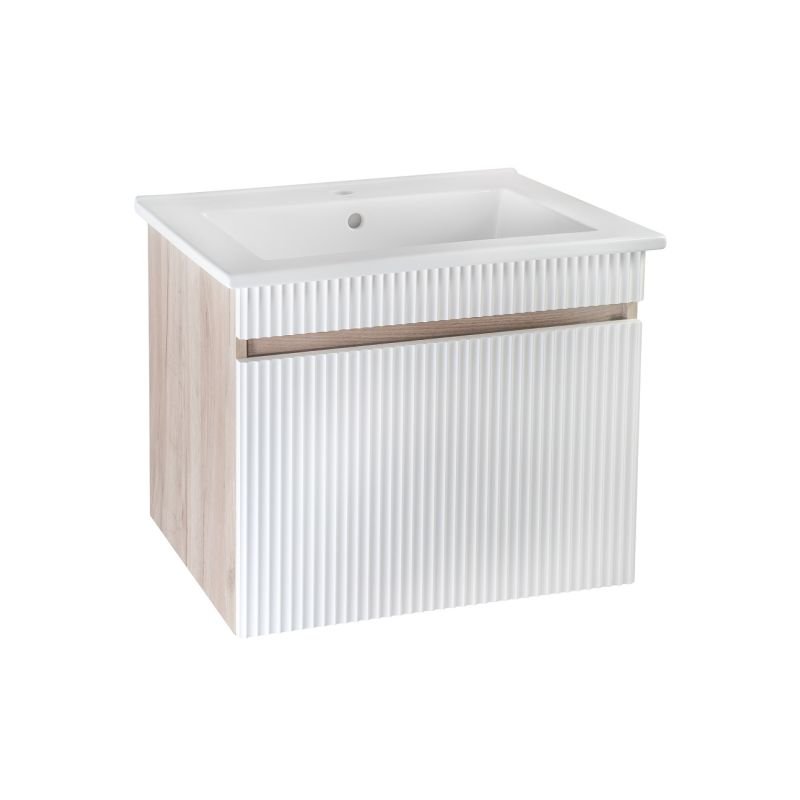 Тумба под раковину Runo Модена 65 00-00001425 подвесная Крафтовый дуб Белая