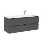 Тумба подвесная SANCOS Folk правая 1195х445х500, c ...Тумба подвесная с рельефным фасадом SANCOS Folk правая 1195х445х500, c двумя ящиками оснащенными доводчиками скрытого монтажа с системой плавного закрывания, цвет Ergraut soft, арт.FL120RES