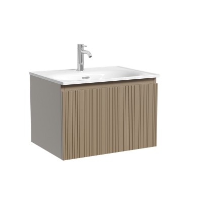 Тумба подвесная с рельефным фасадом SANCOS Code 590х453х400, c одним ящиком оснащенным доводчиками скрытого монтажа с системой Soft close (плавного закрывания), цвет серо- бежевый , арт. CD60GB