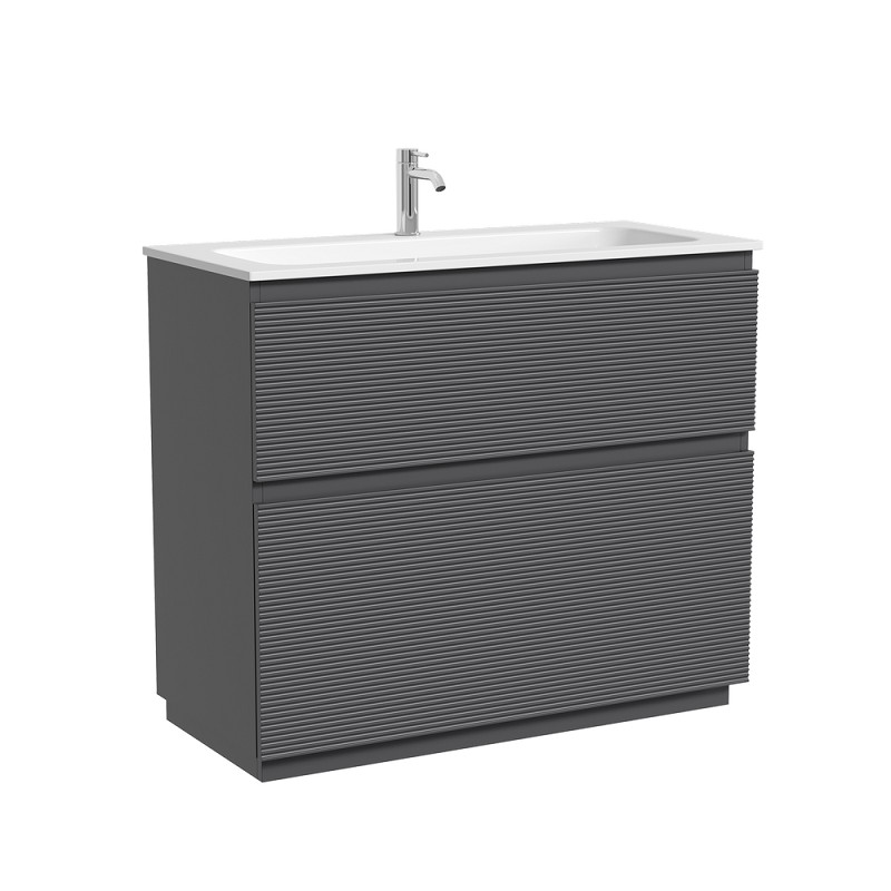 Тумба напольная с рельефным фасадом SANCOS Folk Floor 995х445х850, c двумя ящиками оснащенными доводчиками скрытого монтажа с системой плавного закрывания, цвет Grey soft, арт.FL100FGS