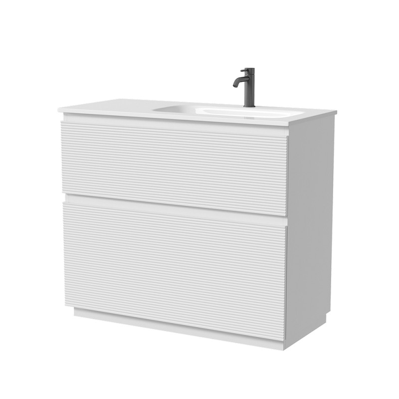 Тумба напольная с рельефным фасадом SANCOS Folk Floor левая 995х445х850, c двумя ящиками оснащенными доводчиками скрытого монтажа с системой плавного закрывания, цвет Bianco, арт.FL100FLW