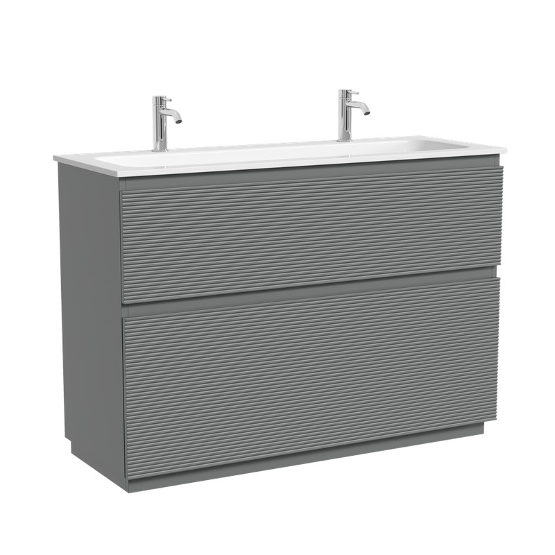 Тумба напольная с рельефным фасадом SANCOS Folk Floor 1190х445х850, c двумя ящиками оснащенными доводчиками скрытого монтажа с системой плавного закрывания, цвет Ergraut soft, арт.FL120FES