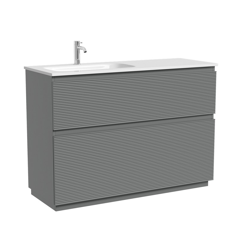 Тумба напольная с рельефным фасадом SANCOS Folk Floor левая 1190х445х850, c двумя ящиками оснащенными доводчиками скрытого монтажа с системой плавного закрывания, цвет Ergraut soft, арт.FL120FLES