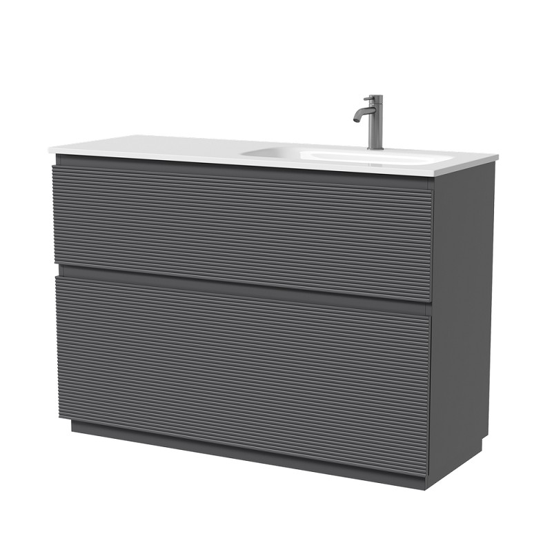 Тумба напольная с рельефным фасадом SANCOS Folk Floor правая 1190х445х850, c двумя ящиками оснащенными доводчиками скрытого монтажа с системой плавного закрывания, цвет Grey soft, арт.FL120FRGS