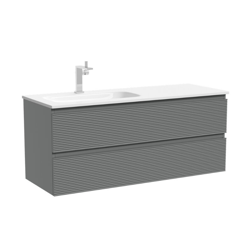 Тумба подвесная с рельефным фасадом SANCOS Folk левая 1195х445х500, c двумя ящиками оснащенными доводчиками скрытого монтажа с системой плавного закрывания, цвет Ergraut soft, арт.FL120LES