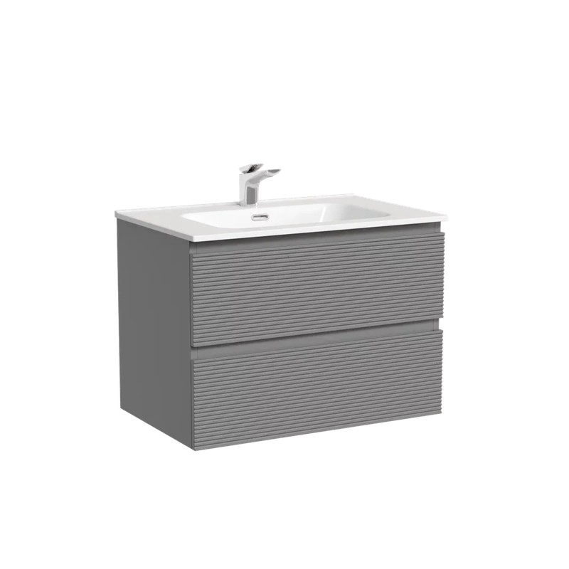 Тумба подвесная с рельефным фасадом SANCOS Folk 690х445х500, c двумя ящиками оснащенными доводчиками скрытого монтажа с системой плавного закрывания, цвет Ergraut soft, арт.FL70ES