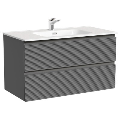 Тумба подвесная с рельефным фасадом SANCOS Folk 890х445х500, c двумя ящиками оснащенными доводчиками скрытого монтажа с системой плавного закрывания, цвет Grey soft, арт.FL90GS