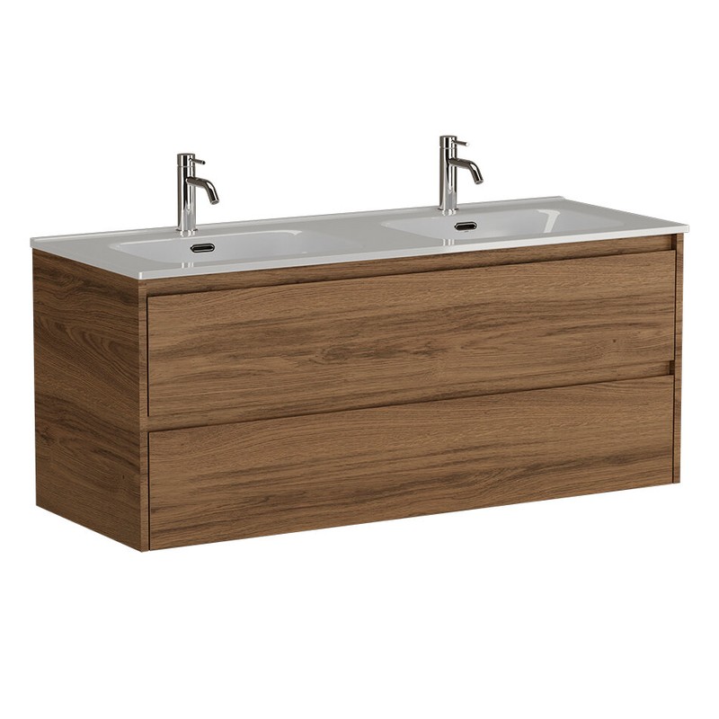 Тумба подвесная SANCOS Libra 1190х450х500 c двумя ящиками оснащенными доводчиками скрытого монтажа с системой Soft close (плавного закрывания), c фрезерованными ручками по всей длине фасада, Светлое дерево, арт. LB120-2ECH
