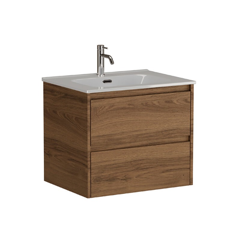 Тумба подвесная SANCOS Libra 590х450х500 c двумя ящиками оснащенными доводчиками скрытого монтажа с системой Soft close (плавного закрывания), c фрезерованными ручками по всей длине фасада, Светлое дерево, арт. LB60ECH