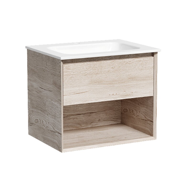 Тумба подвесная SANCOS Marmi 1.0 590х445х520 c одним ящиком оснащенным доводчиками скрытого монтажа и открытой нишей, дуб галифакс натуральный, арт. MR1.060EG