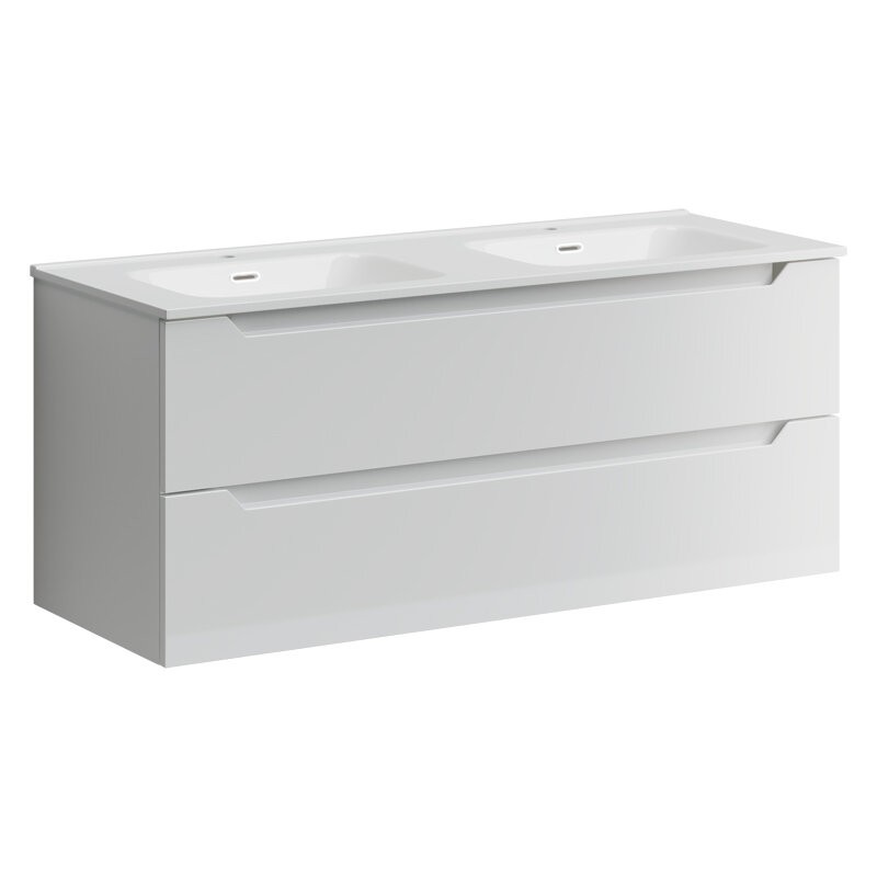 Тумба подвесная SANCOS Norma 2.0 1190х450х500, c двумя ящиками оснащенными доводчиками скрытого монтажа с системой Soft close (плавного закрывания), белый Глянцевый, арт. NR2.120-2W