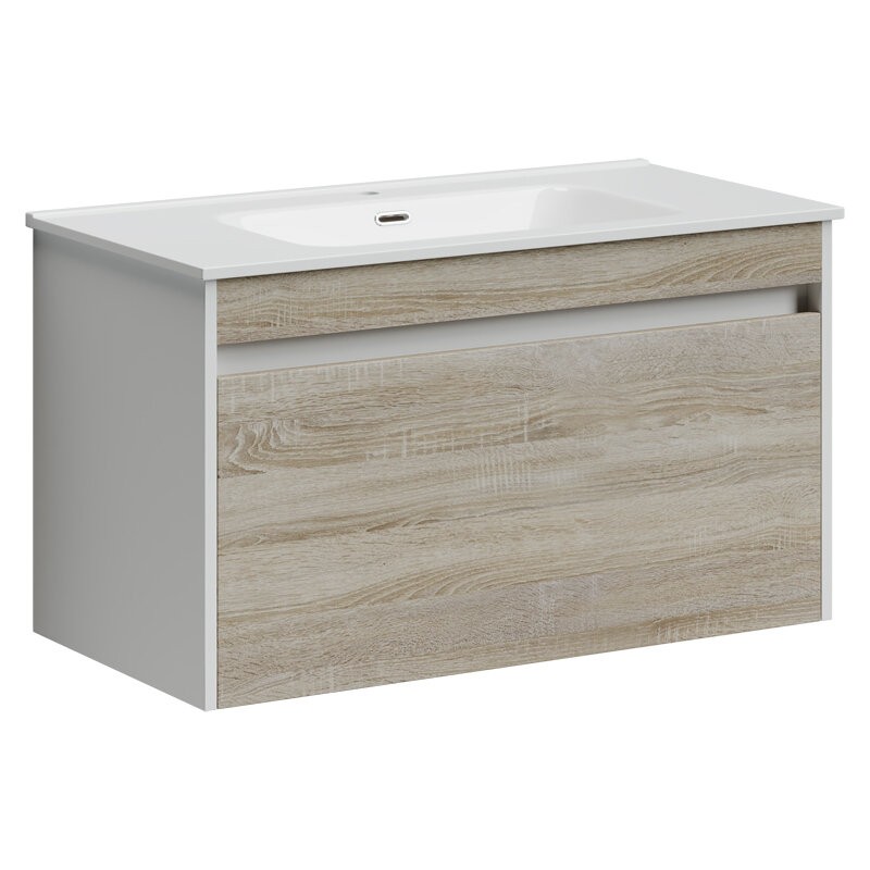 Тумба подвесная SANCOS Smart 890х450х500, c двумя ящиками оснащенными доводчиками, дуб бардолино/белый , арт. SM90E