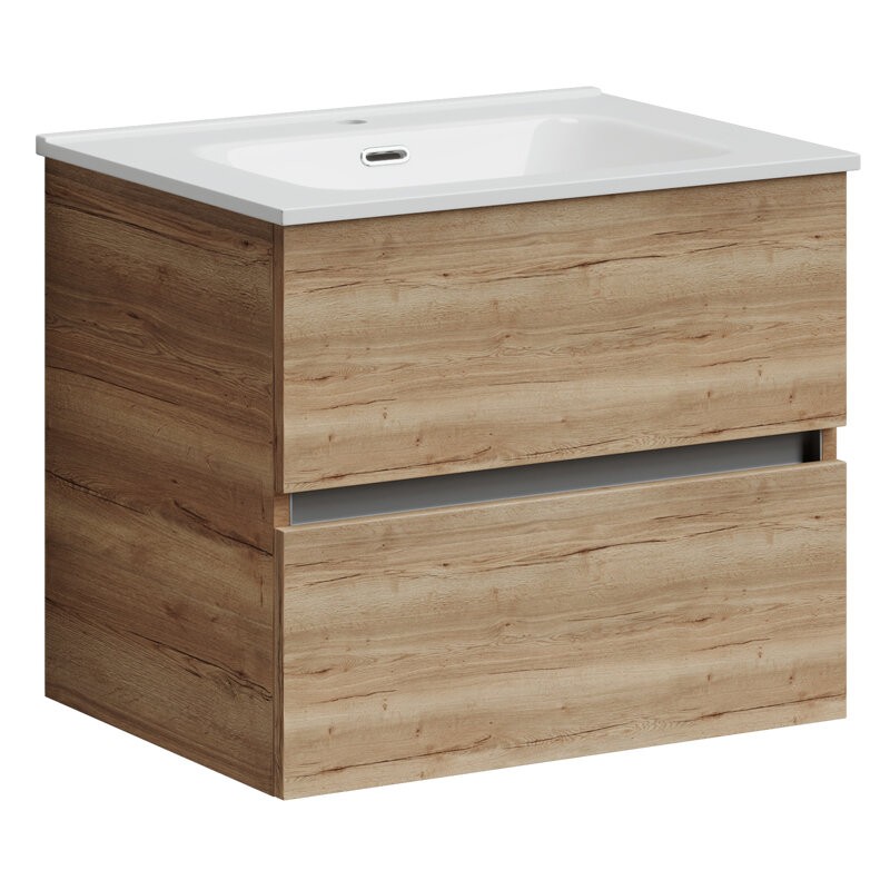 Тумба подвесная SANCOS Urban 590х450х550 c двумя ящиками оснащенными доводчиками скрытого монтажа с системой Soft close (плавного закрывания), c ручкой Gola по всей длине тумбы, дуб галифакс натуральный , арт. UR60EG