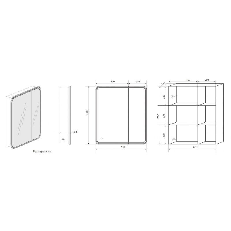 Зеркало-шкаф с подсветкой ART&MAX, левый ART&MAX VERONA AM-Ver-700-800-2D-L-DS-F