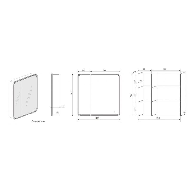 Зеркало-шкаф с подсветкой ART&MAX, правый ART&MAX VERONA AM-Ver-800-800-2D-R-DS-F