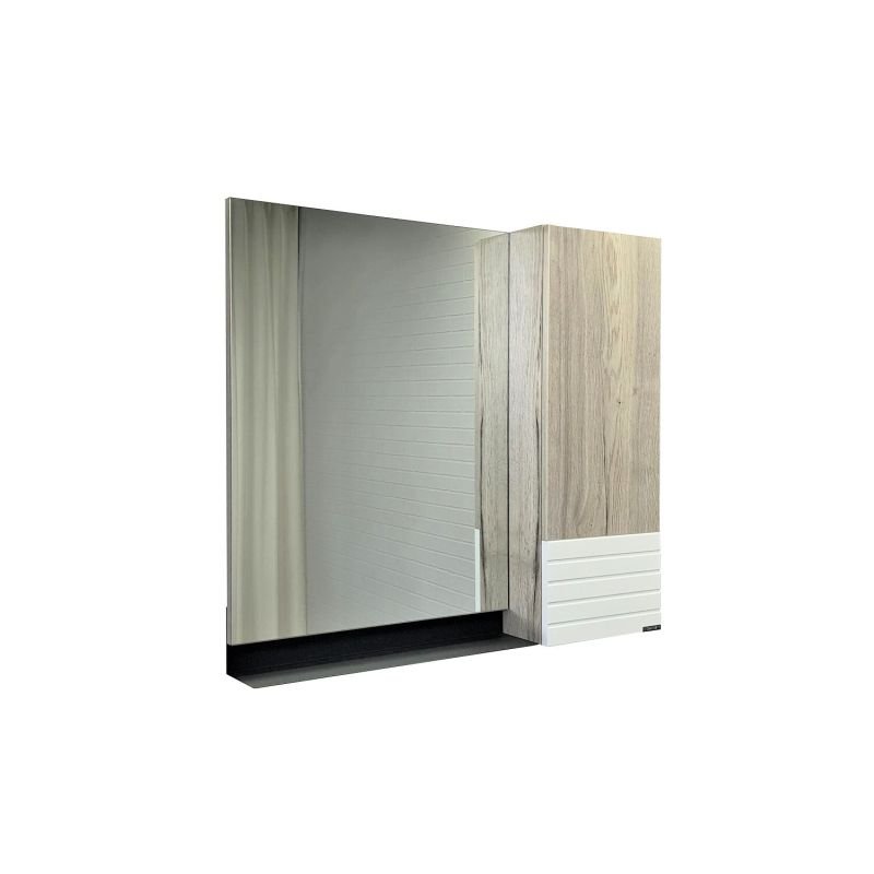 Створка оснащена петлями с механизмом плавного закрывания. Высококачественное зеркальное полотно с амальгамой на основе серебра. Комбинированный фасад из МДФ с горизонтальной фрезеровкой и влагостойкого ЛДСП Дуб дымчатый. За створкой одна горизонтальна...