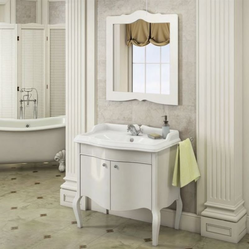 Большое зеркало в обрамлении фигурной рамы из МДФ покрытого белой матовой эмалью. Высококачественное зеркальное полотно с амальгамой на основе серебра.